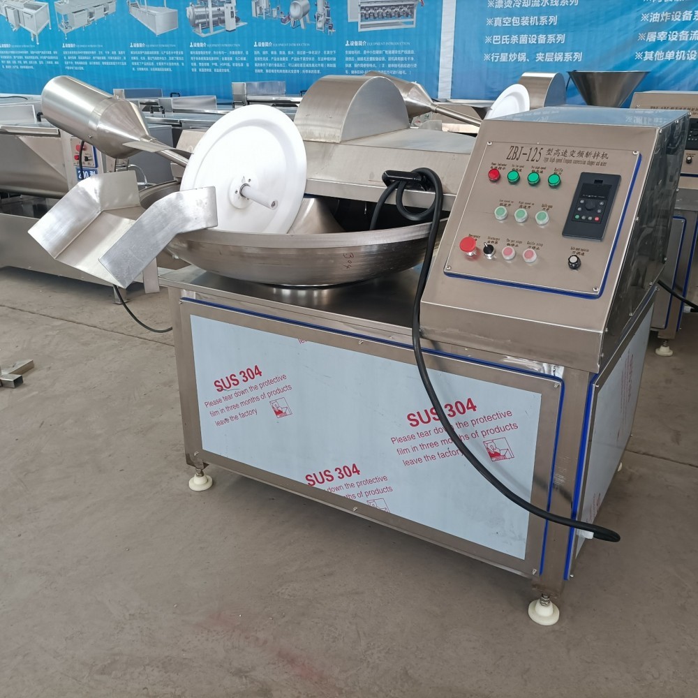 he factory has a number of 125 row 80 chopping and mixing machines in stock, which are made of 304 stainless steel and are used for the production of meat filling thousand page tofu
