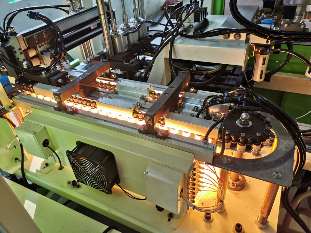 6)Particular pre-heater design makes preform close while heating.Change space, shorten heating tunnel and reduce energy consumption according to the bottle size while blowing.