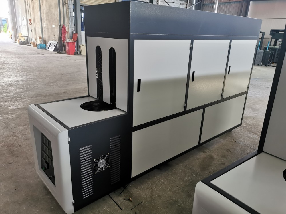 6)Air circuit system consists of movement and blowing so as to meet the needs of different air pressure, also to provide stable high pressure for blowing different shapes of big capacity bottles.