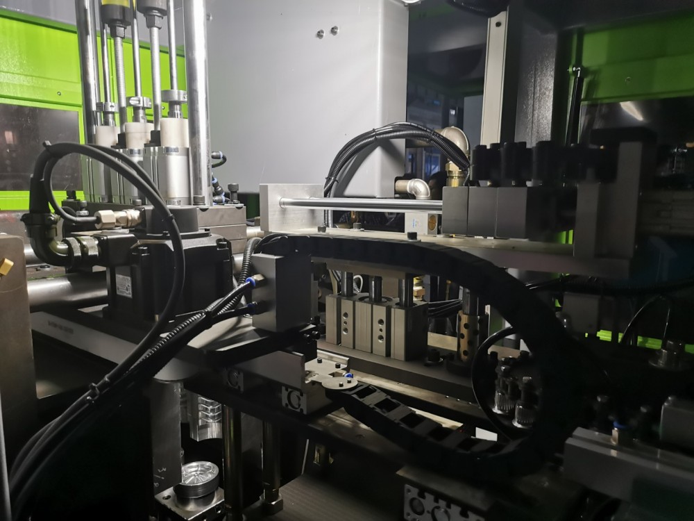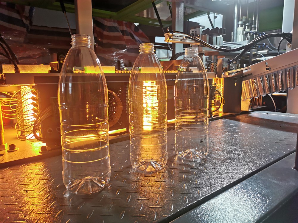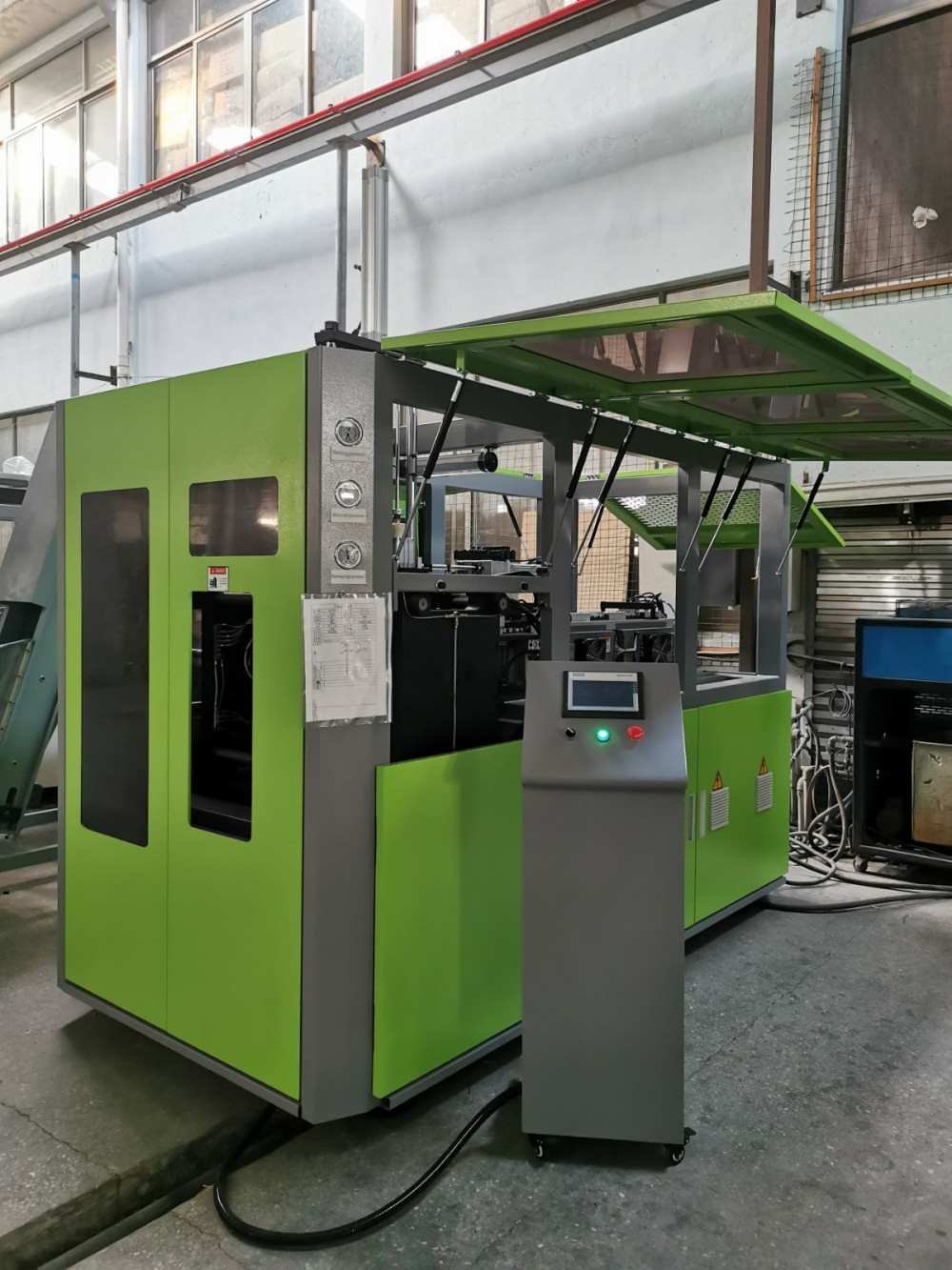 3) According to special demand, adopt cross double crank pressed clamping, with strong clamping force. Mould open stroke can be adjustable according to the bottle size to save the time.